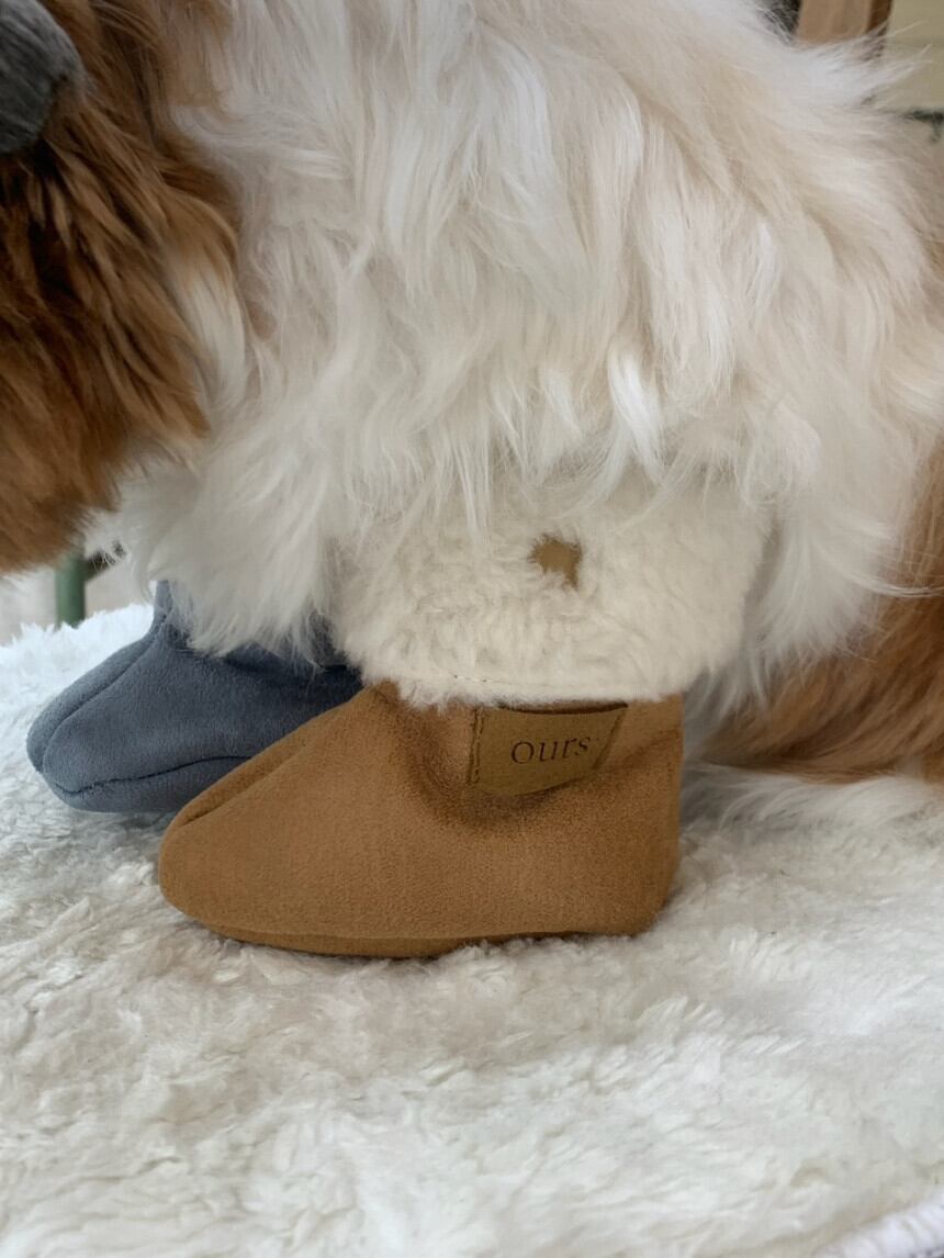 -素材: 表スエード生地 + 裏地 (ポリ50 + アクリル50) 国産フェイクウール生地