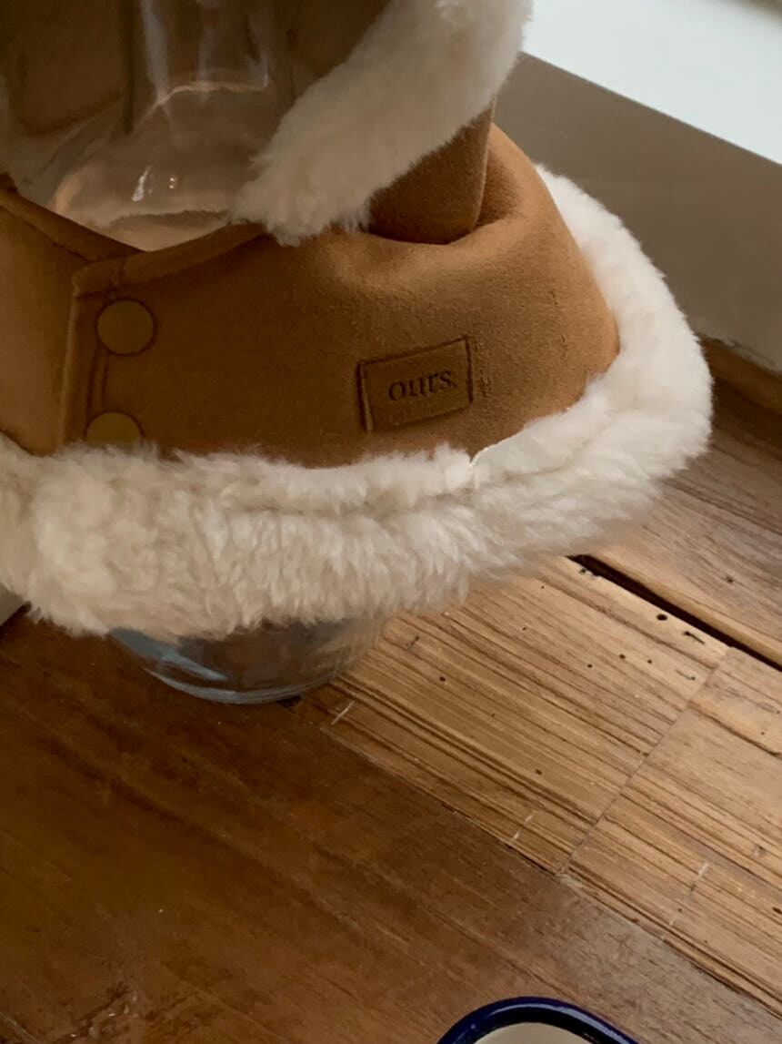 -素材: 表スエード生地 + 裏地 (ポリエステル50 + アクリル50) 国産フェイク羊毛生地