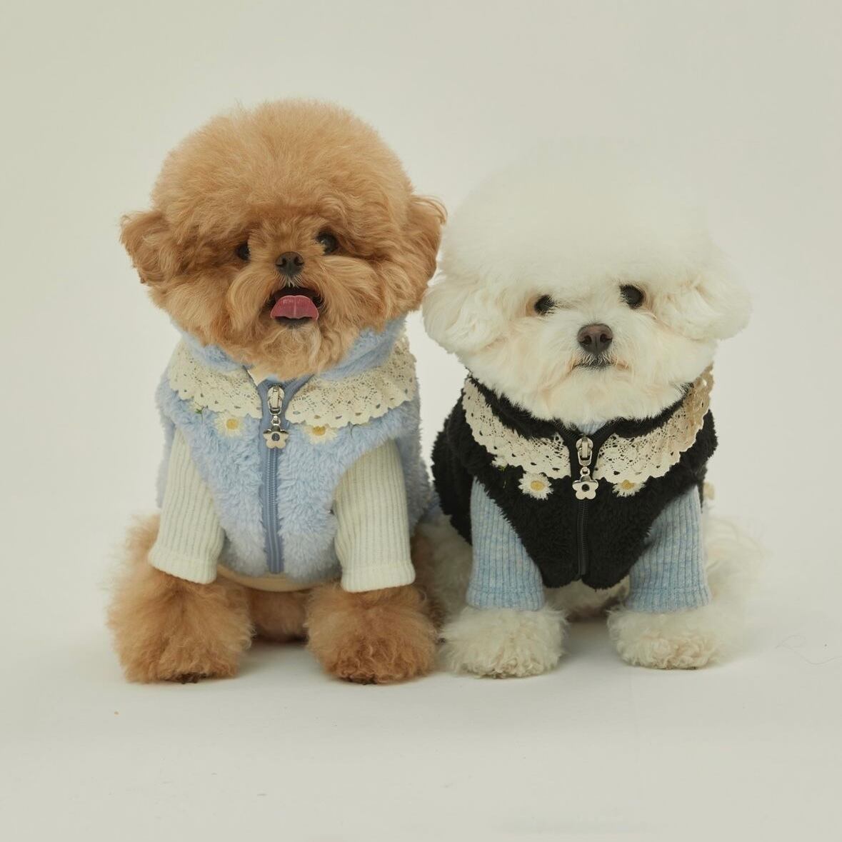 背側ハーネスホールが別々に設けられ、快適な散歩が可能で、 ネックラインのフリルは愛らしさを加えてくれます。