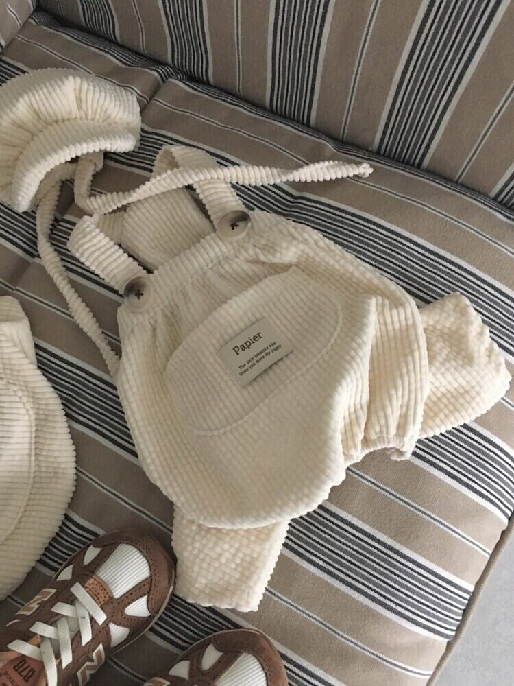 コーデュロイ コレクションからズボンがないバージョンです。バルーンラインでフィットも修正し、修正して着る瞬間に装具に変身させてくれる可愛い製品です。 バブルコーデュロイ素材で鈴のようにふわふわしているのが特徴のより高級なコーデュロイです