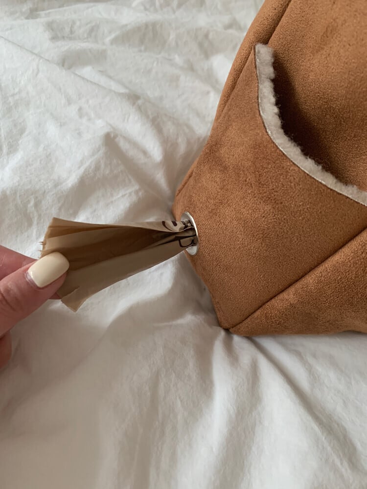 両側にポケットがあるので収納が容易で、片方にはプーバッグが入れられるアイレットがあるのでお散歩の時にとても便利です!