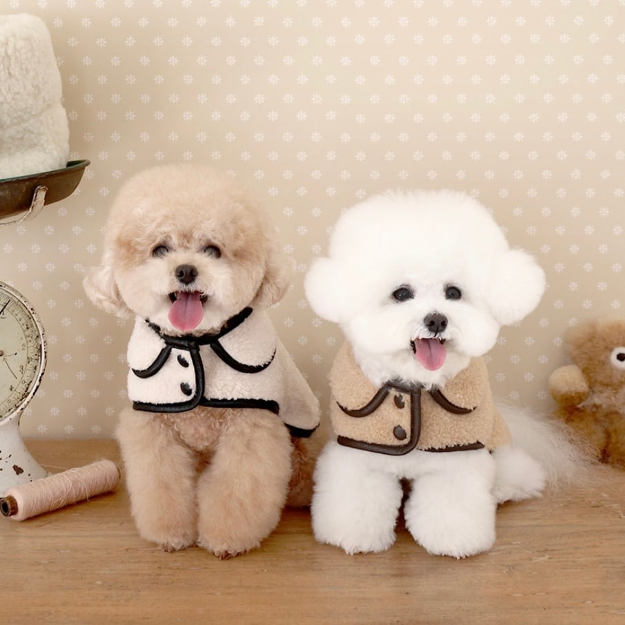 【near by us】teddy leather fleece coat (cream)